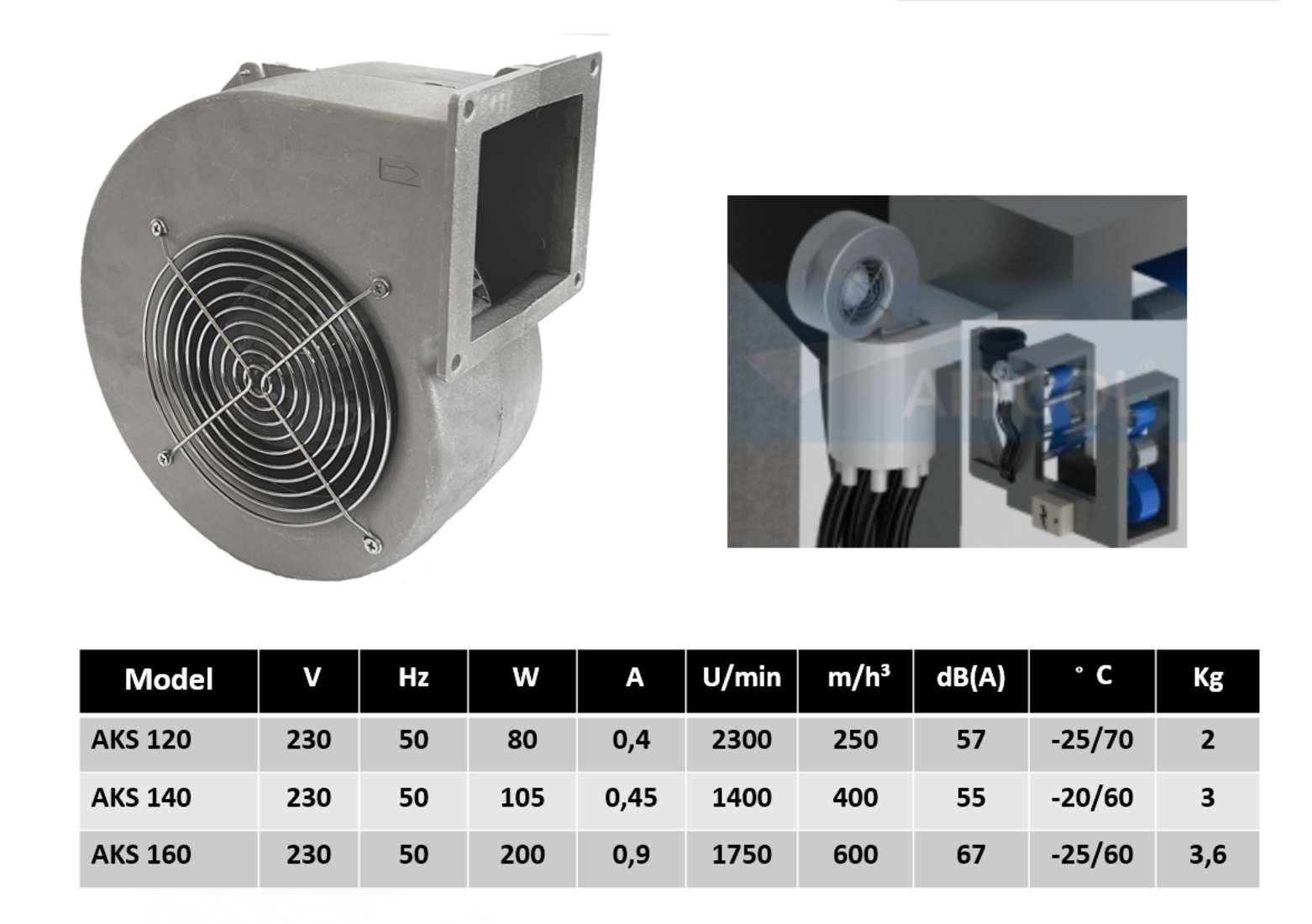 Radiallüfter Radialgebläse AKS 120 – 250 m³/h