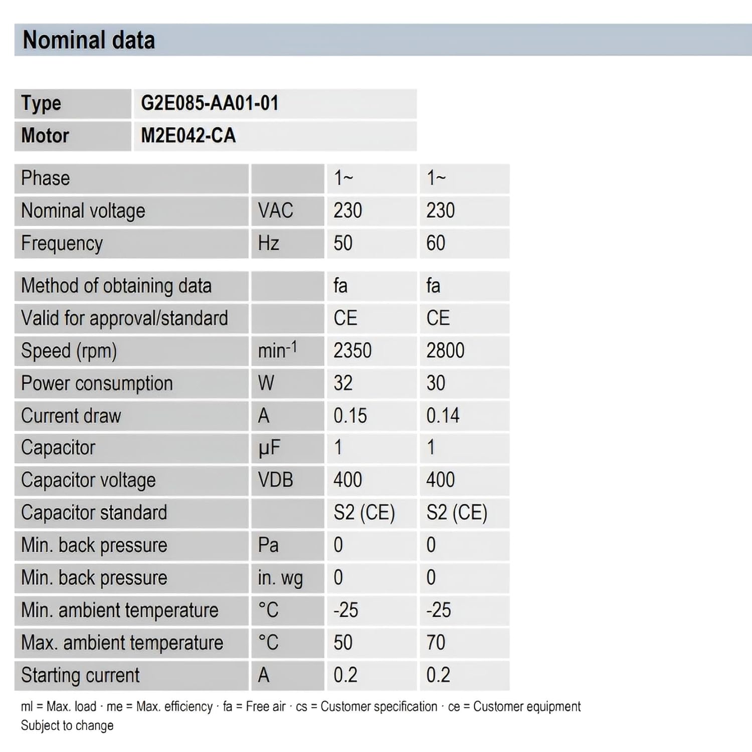 • Drehzahl: 2350 U/min (50 Hz) / 2800 U/min (60 Hz)